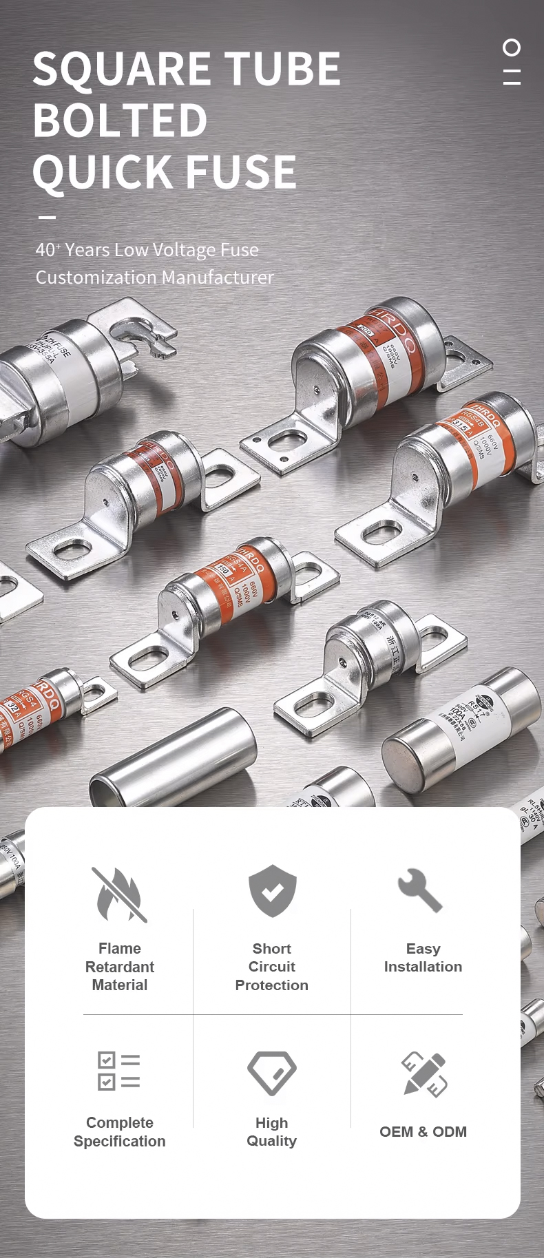 Fius RS0/RS3-50 500V ialah fius laju berbolted tiub persegi, dengan voltan terkadar 500V dan kapasiti pecah 50ka, yang mempunyai jaminan keselamatan yang baik.