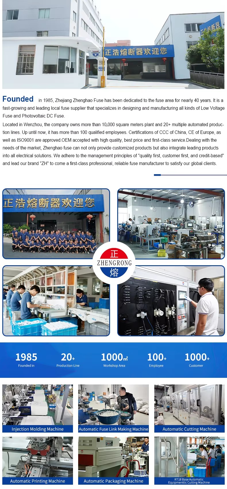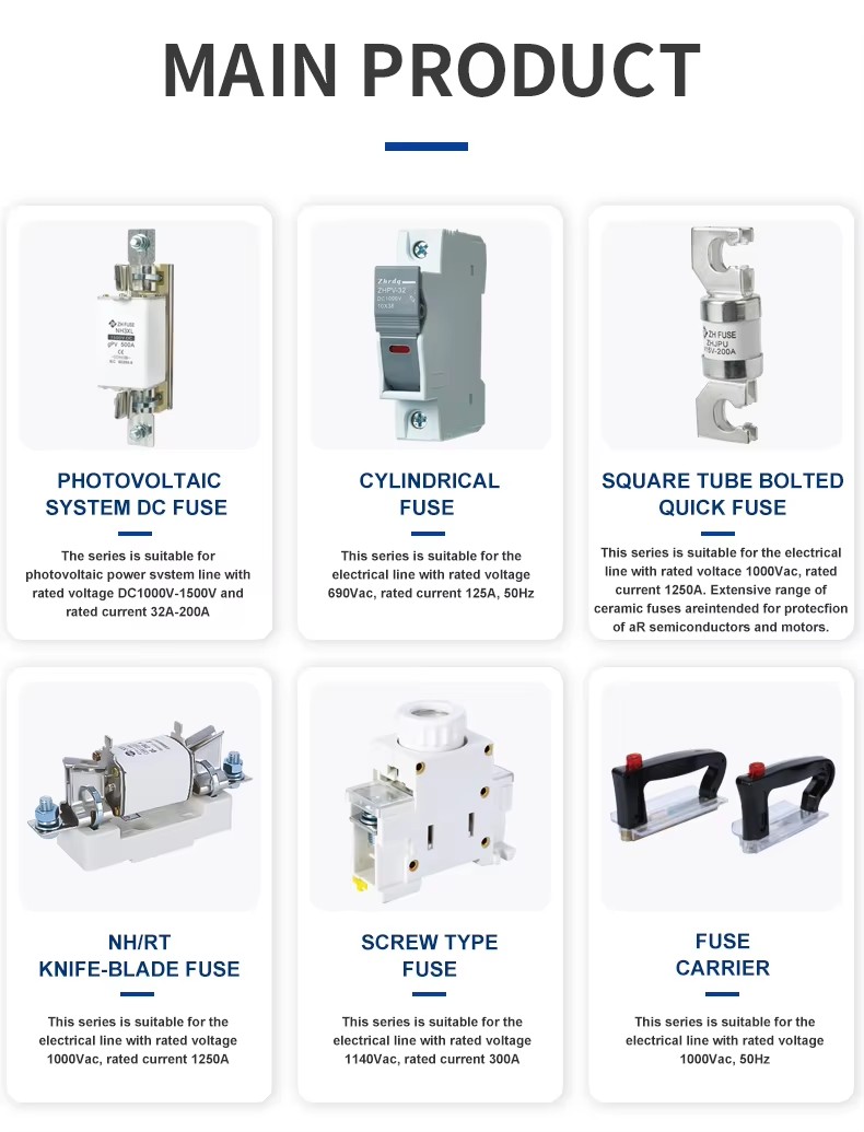 Ciri-ciri struktur ZHPV-125 1000V DC Fuse Base and Fuse Links 22 × 58mm Silinder Seramik Seramik Seramik Bawah dalam Sistem Photovoltaic adalah seperti berikut. Siri fius ini terdiri daripada pautan fius dan pemegang fius. Badan fius keratan rentas yang berubah-ubah yang diperbuat daripada lembaran tembaga tulen (atau dawai tembaga, dawai perak, lembaran perak) dimeteraikan dalam tiub fius yang diperbuat daripada tiub kain seramik atau epoksi yang tinggi, dipenuhi dengan pasir kuarza kemelut tinggi yang dirawat secara kimia sebagai medium pemadam arka. Kedua -dua sisi teras fius dapat disambungkan ke plat akhir melalui kimpalan tempat, membentuk struktur berbentuk topi silinder. Pangkalan fius ZHPV-125 1000V DC diperbuat daripada resin atau shell plastik yang ditekan dengan kejutan elektrik, termasuk elemen fius, yang disambungkan dengan riveting sebagai sokongan untuk komponen badan fius saiz yang sesuai. Siri fius ini mempunyai kelebihan jumlah kecil, pemasangan mudah, penggunaan selamat, dan penampilan yang indah.